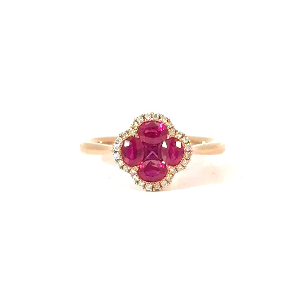 - Cette délicate composition de rubis ovales est rehaussée par une ligne délicate de diamants.